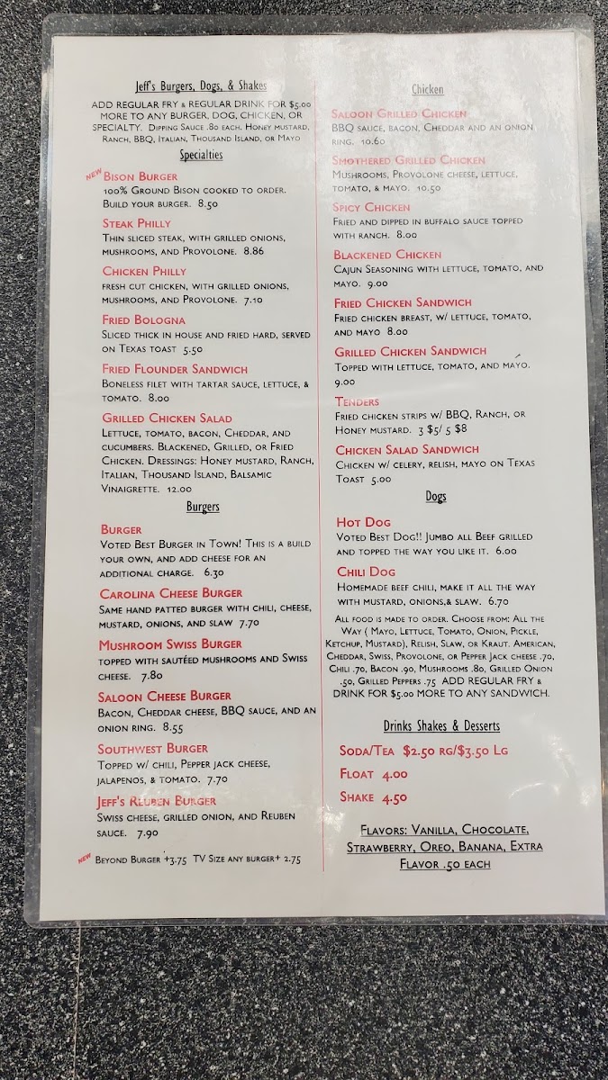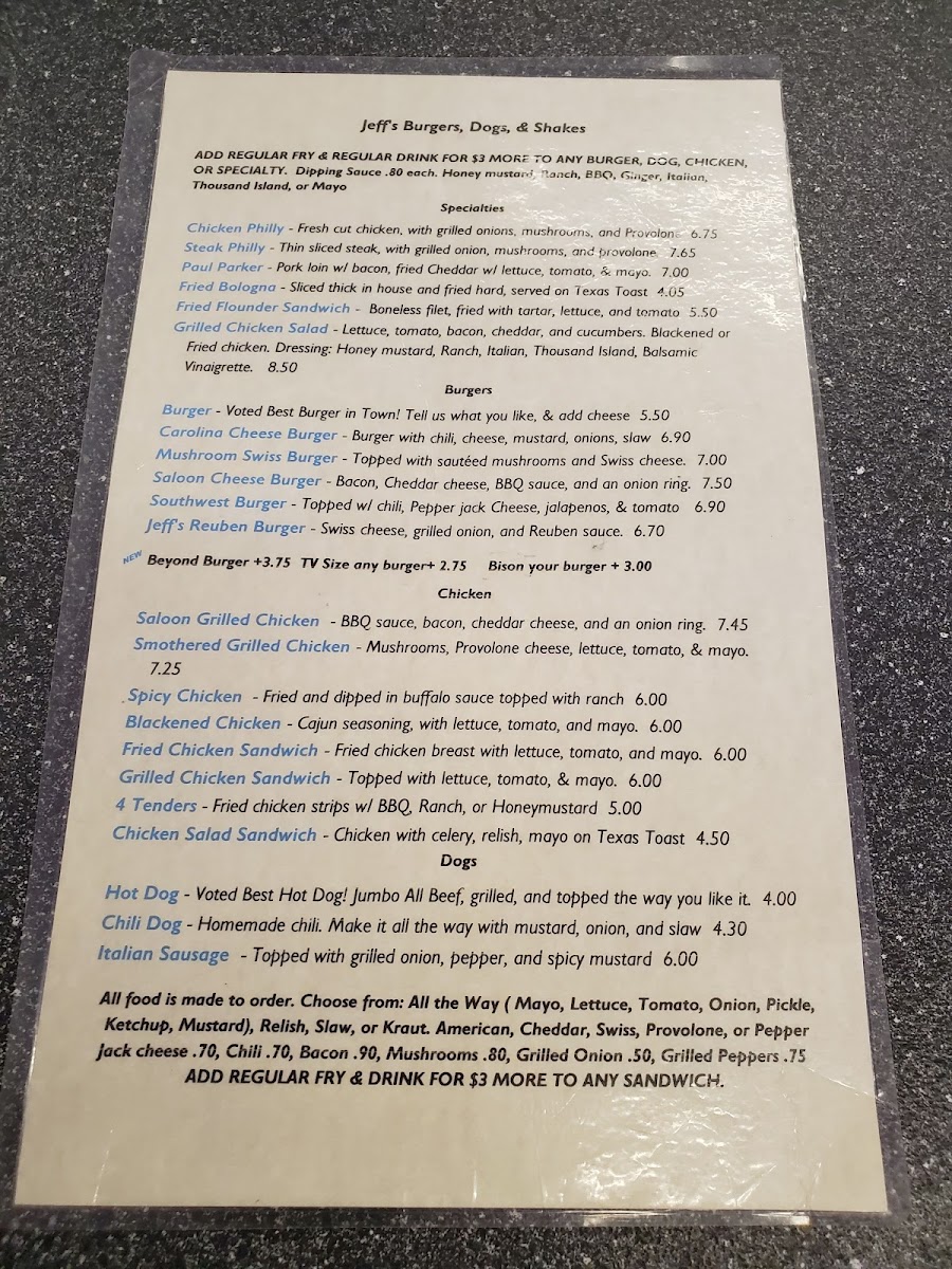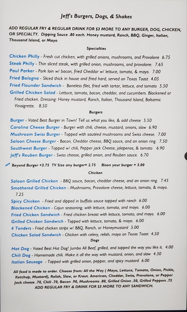 Jeff's Burgers, Dogs & Shakes Menu (Update 2025)